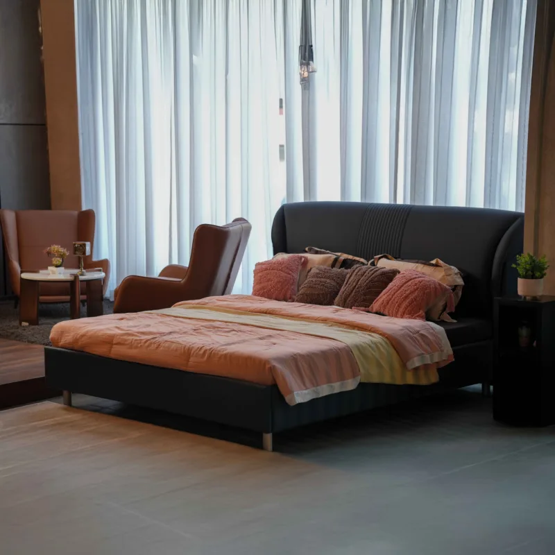 Upholstered in rich imported leather, it adds a touch of sophistication, making your bedroom both stylish and inviting.