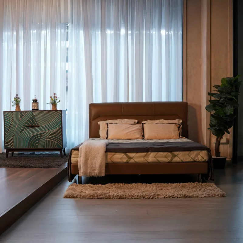 The rich leather finish enhances your bedroom’s ambience, making it a centerpiece of refined living.