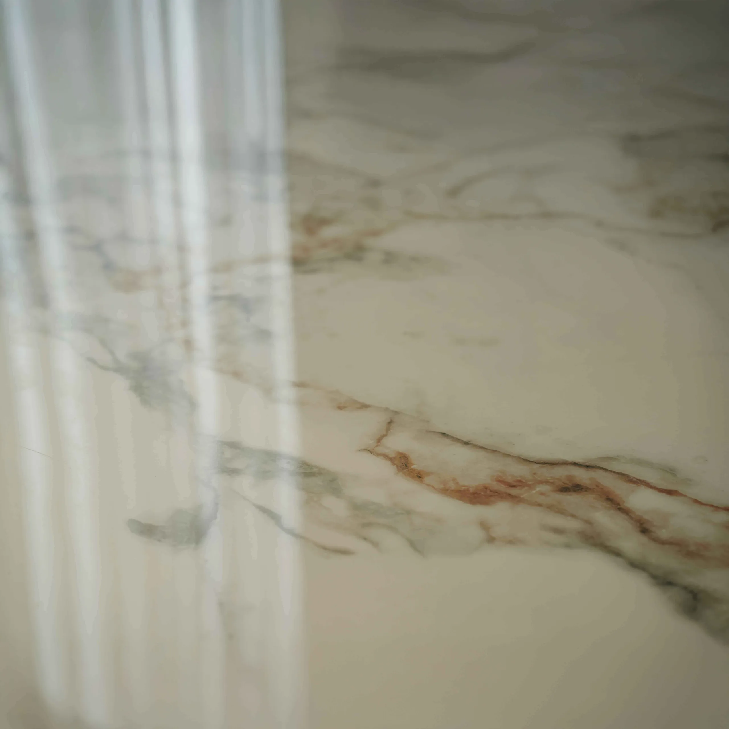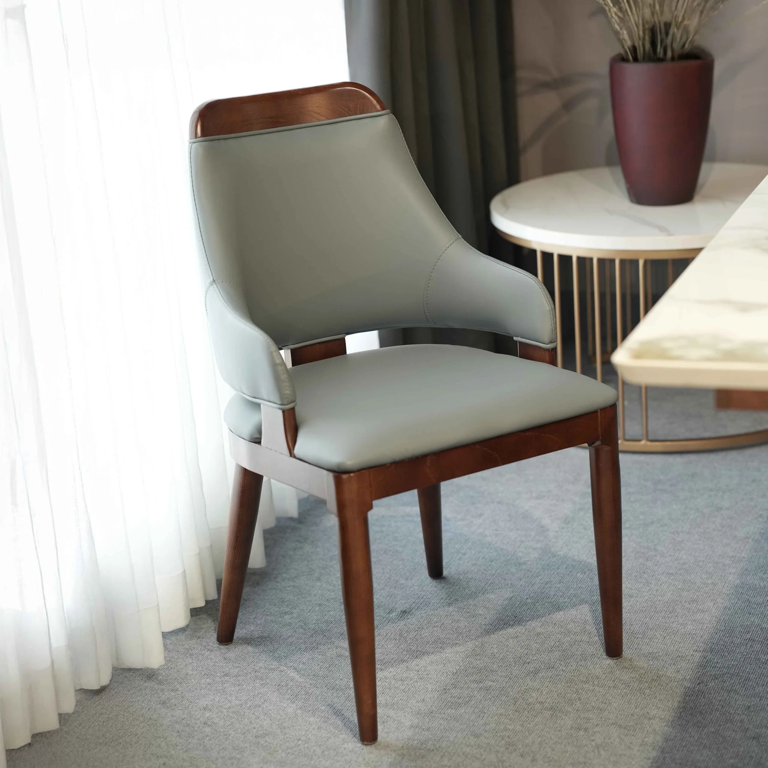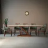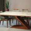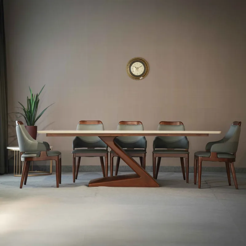 The DT222 Dining Table combines the natural warmth of a solid wooden base with the elegance of a premium marble top.