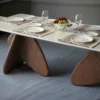 The SGB BB5 Dining Table showcases imported craftsmanship with a wood-finish base and a premium marble top.