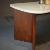 The SGB BB9 Dining Table showcases imported craftsmanship with a  wood-finish base and a premium marble top.