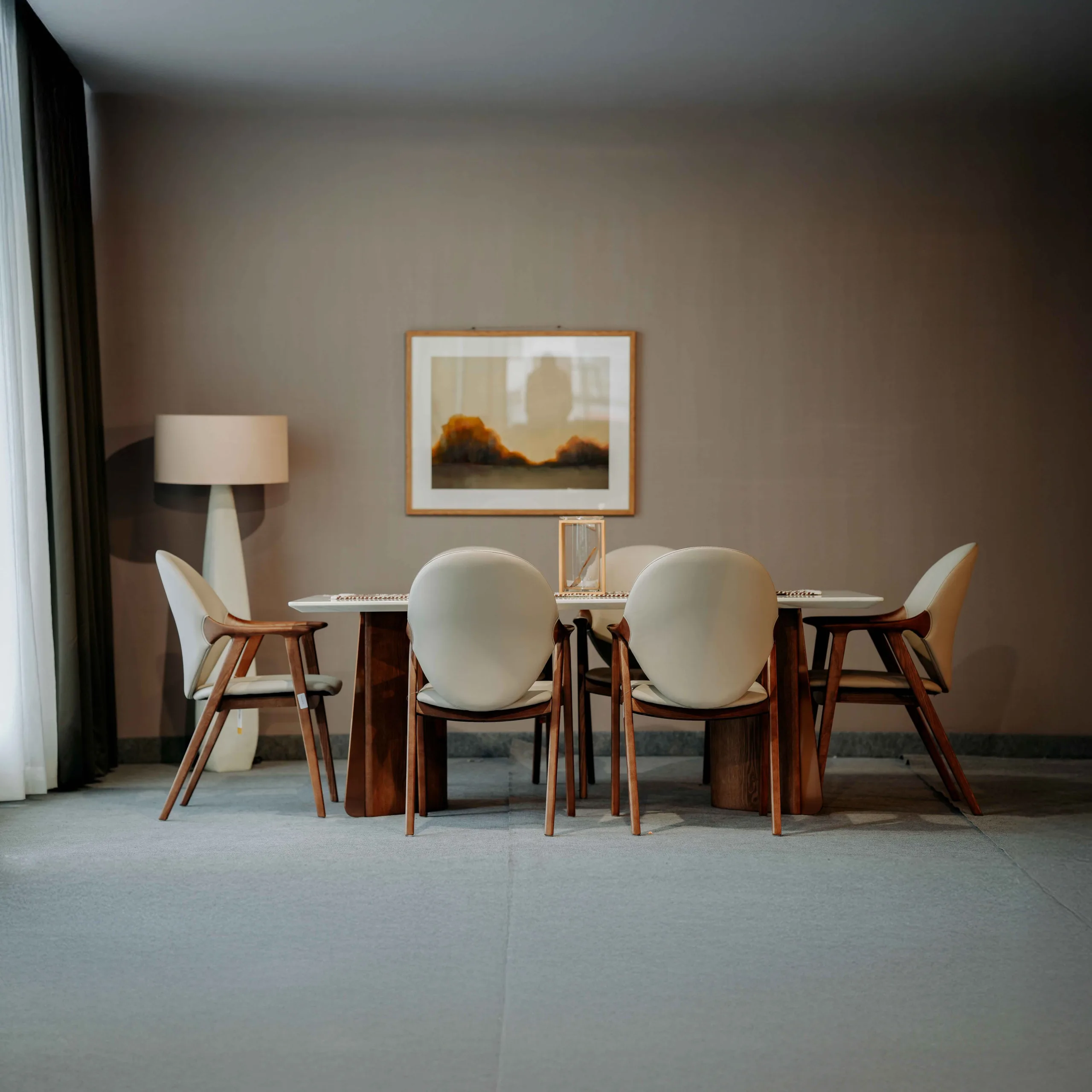 Designed to seat six, it brings a touch of international elegance and everyday functionality to modern homes.