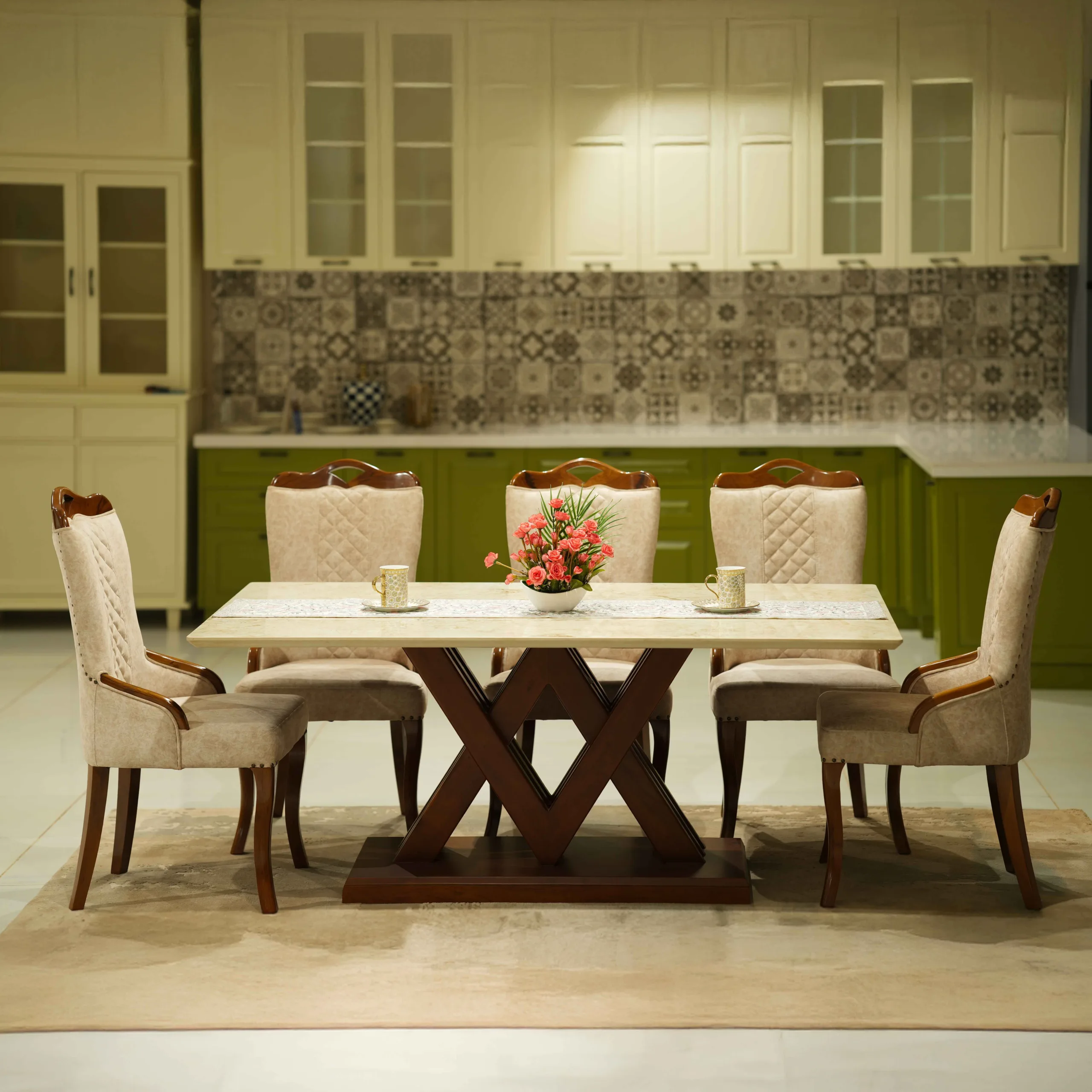 Its spacious design makes it an ideal centerpiece for family dining and stylish gatherings.