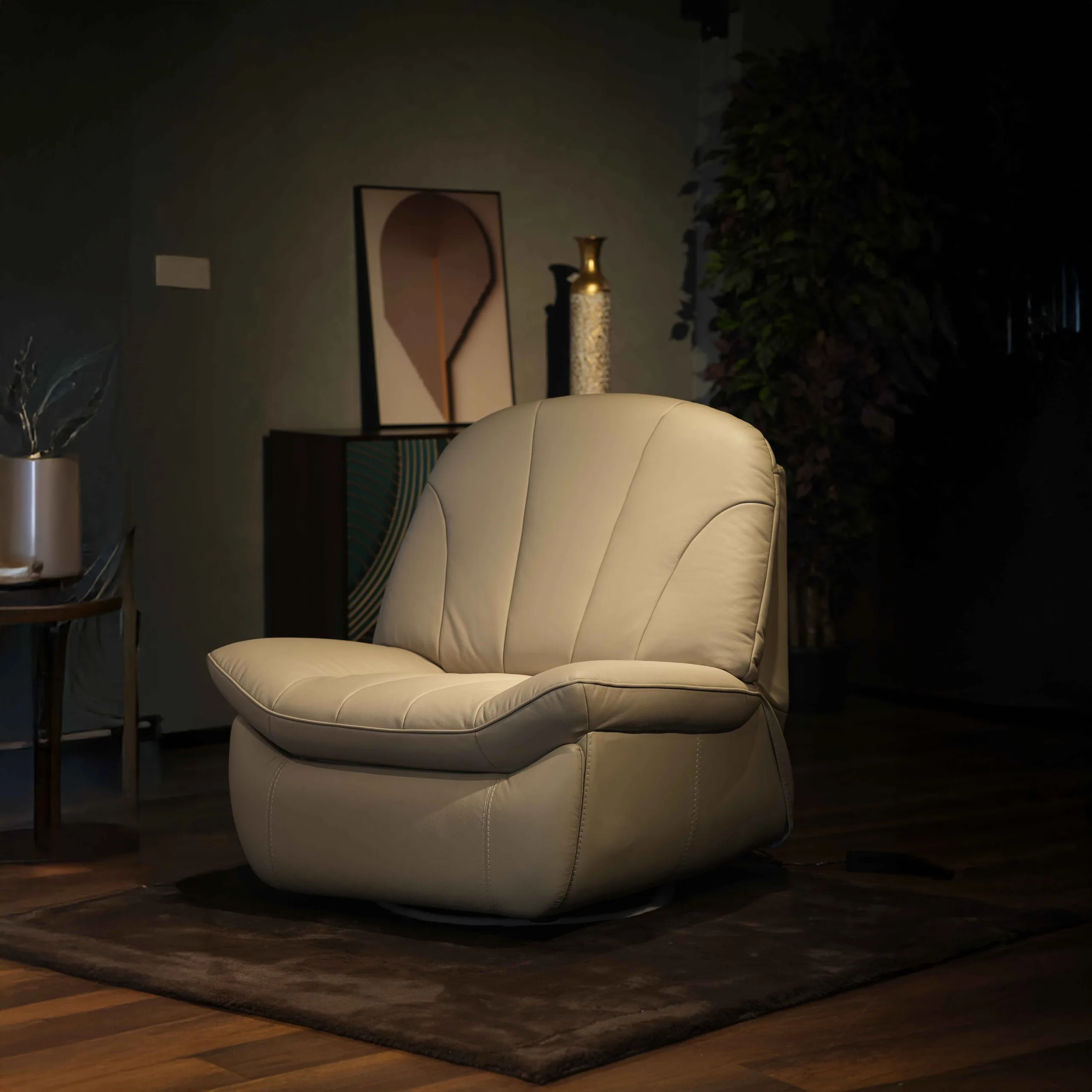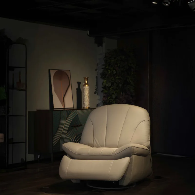 Crafted in genuine leather, this single-seater recliner combines sleek design, plush cushioning, and smooth reclining action — perfect for relaxation in style.