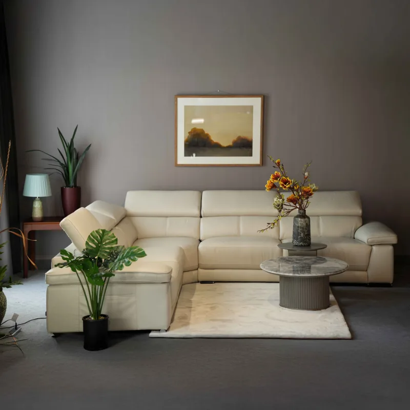 Redefine luxury living with this premium leather sofa from HTL, crafted with world-class design and comfort in mind. Upholstered in genuine high-grade leather, this 3+3+Lounger configuration offers expansive seating and an indulgent lounging experience.
