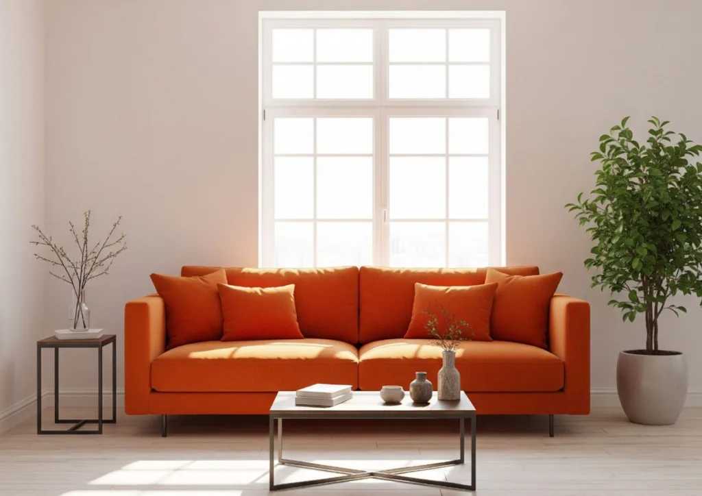 Choose a bold, beautifully crafted sofa as your centerpiece. Keep the rest of the furniture minimal — a coffee table and a side chair may be all you need. This layout keeps the focus on your statement piece and gives your living room a modern, clutter-free look